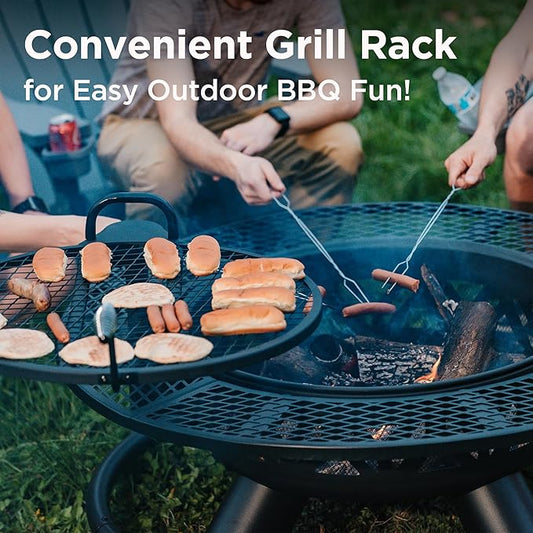 38” Wood Burning Fire Pits for Outside,3-in-1 Fire Pit with Grill, Spark Screen & Fire Poker,Outdoor Firepit Table with Swivel Cooking Grate for Yard BBQ Bonfire Patio Camping (38 inch)