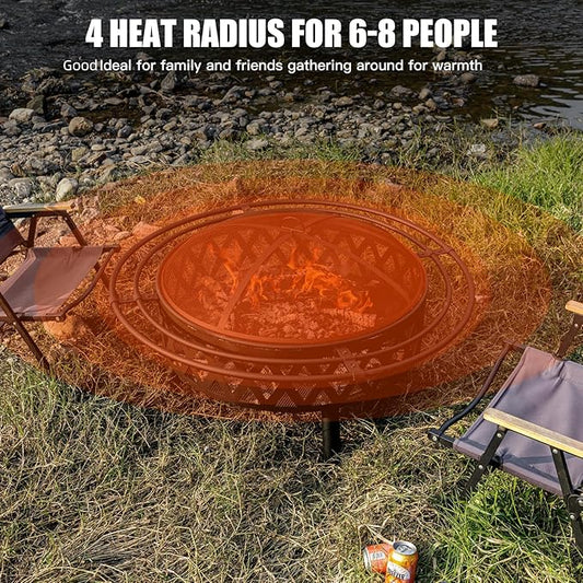 42 Inch Wood Burning Fire Pit with 2 Loops, Outdoor Fire Pit with Spark Screen & Fire Poker, Cross Weave Firepit for Outside Fireplace Bonfire for Yard,Patio, Garden