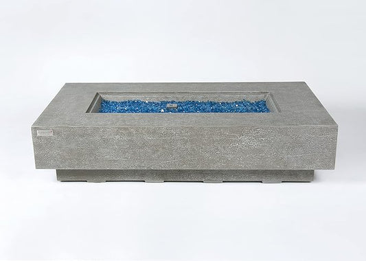 Elementi+ | Riviera Gas Fire Pit Cast Concrete 60" Rectangular Fire Table, Outdoor Fire Pit Electronic Ignition | Canvas Cover, Fire Glass and Burner Lid Included | Light Gray | Propane Gas