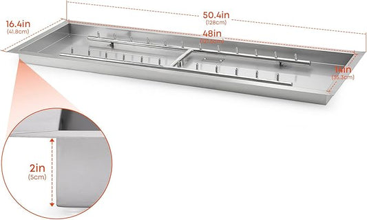 Stanbroil 48 x 14 Inch Upgrade Rectangle Fire Pit Jet Burner Pan, 304 SS Propane Gas Firepit for Outside DIY Fire Pit Table, High Flame, BTU 185,000 Max