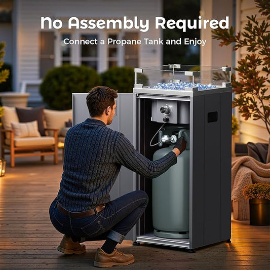 BALI OUTDOORS 15 inch Gas Fire Pit, Outside Propane Firebowl with Glass Wind Guard, Patio Square Fireplace with Fire Glass Stone for Backyard, Garden and Terrace