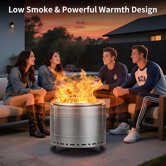19.5 inch Stainless Steel Smokeless Fire Pit, Outdoor Smokeless Firepit, Wood Burning Fire Pits for Camping, Bonfire, Low Smoke Firepit for Outside (Vertical Hole)