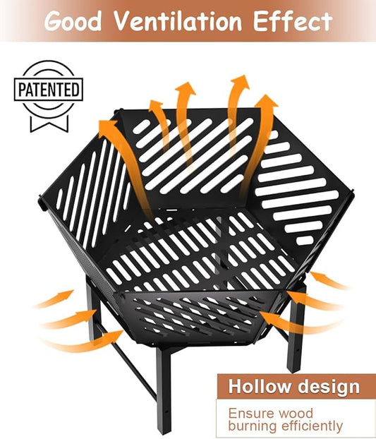 33 Inch Outdoor Fire Pit, Hexagon Shaped Wood Burning Fire pits for Outside, Metal Firepit with Fire Poker&Mesh Cover for Bonfire, Patio, Yard, Garden,Beach and Camping (33'' Black)