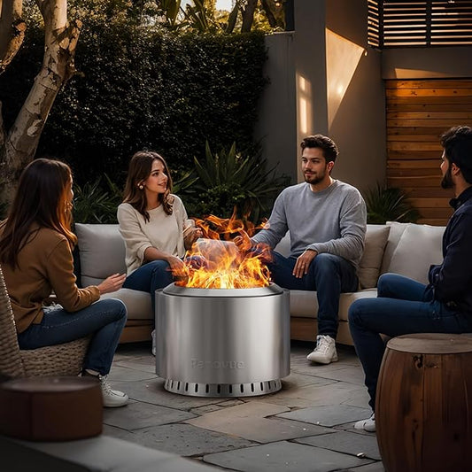HGD 27.5" Smokeless Fire Pit Outdoor, Stainless Steel Wood Burning Firepit with Secondary Combustion, Backyard Patio Stove for Garden, BBQ & Bonfire