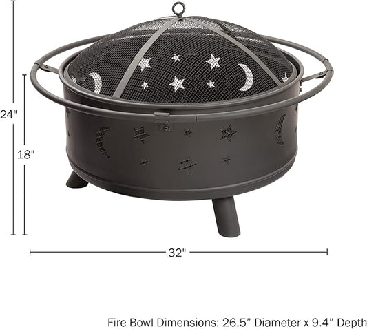 Fire Pit - 32-Inch Outdoor Wood Burning Firepit with Screen, Poker, and Cover - Outdoor Fire Pits for Backyard, Deck, or Patio by Pure Garden (Black)
