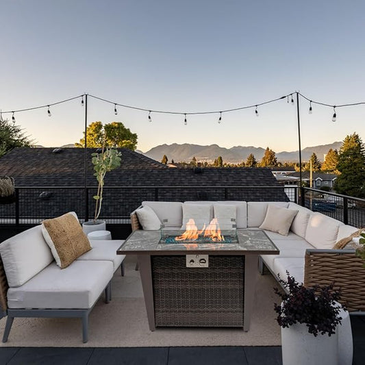 NAGA HABNA 56 Inch Propane Fire Pit Table, Rectangle Outdoor Fire Table (50,000 BTU), Gas Fire Pit w Lava Rocks for Garden, Pool, Backyard