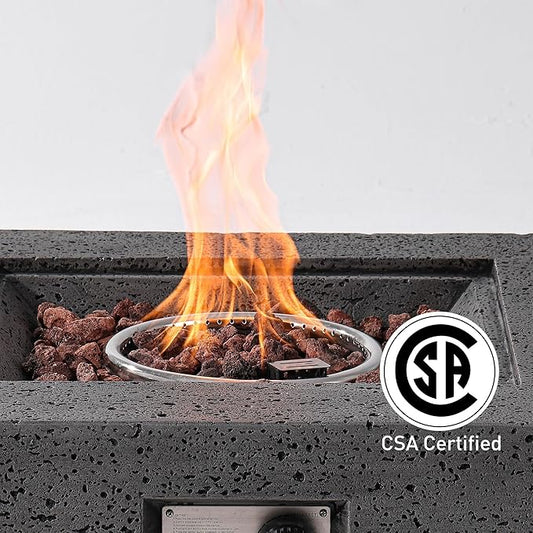 SUNBURY Outdoor Fire Pit, 35" Square Propane Gas Patio Fire Table 50,000 BTU Concrete Travertine Design, CSA Certified, Low Firepit Table with Lava Rocks, Waterproof Cover (Grey)