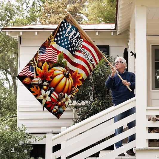 FLAGWIX American Pumpkin Flag - House American Flags for Outside 29.5" x 39.5" - Fall Gifts for Women Men, Fall Decorations for Home, Thanksgiving Decorations for Garden Home Decor