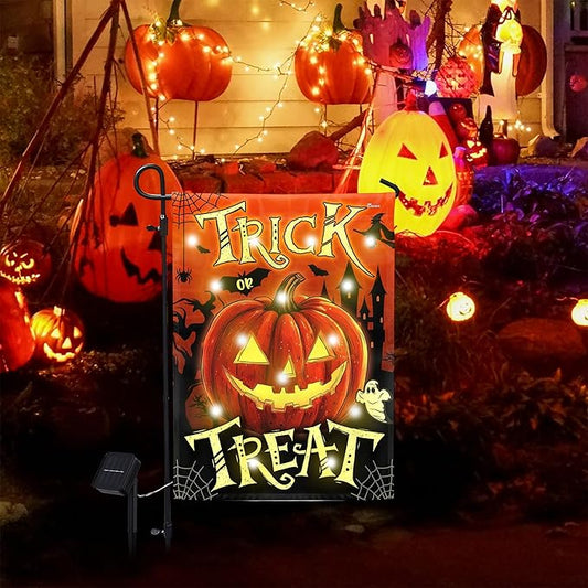 FLAGWIX Halloween Garden Flag - Solar Flag Light for Garden Decor 11.5"x17.5" - Fall Garden Flags for Halloween Decorations, Pumpkin Yard Flags for Fall Outdoor Decor, Outside Decorations for Yard