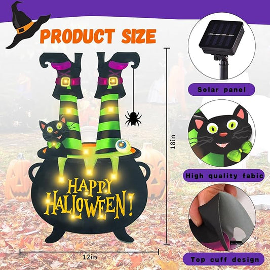 Halloween Lighted Garden Flag for Outside, Witch Feet Shape Flag Yard Decor, 8 Modes Double Sided Cauldron Eyeball Black Cat Outdoor Hlloween Decorations for Home Porch (Green-28x40)