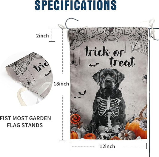 Halloween Black Lab Garden Flag Trick or Treat Yard Flag Ghost Labrador Dog Garden Flags for Outside 12x18 Double Sided Mini Skeleton Halloween Decor Outdoor Lawn Welcome Flag