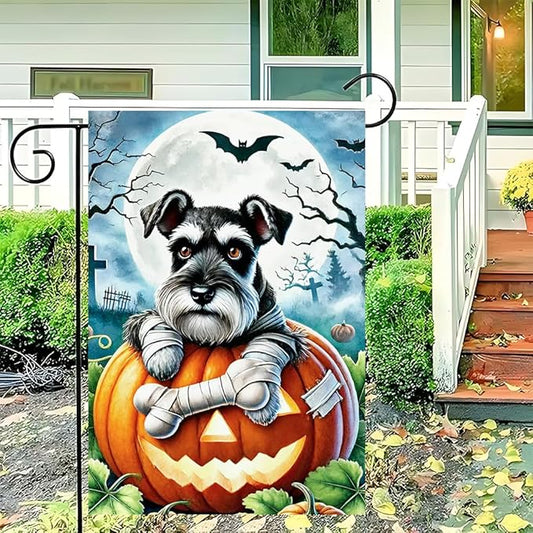 Winter Halloween Puppy Cat Pumpkin Garden Flag 12x18 Inch Double Sided Outdoor Flag