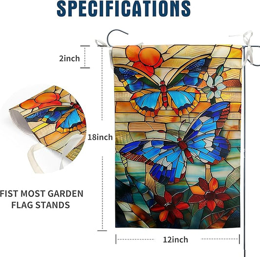 Stained Glass Butterfly Garden Flag Spring Summer Yard Flag Fall Floral Decorative Flags for Outside 12x18 Double Sided Small Seasonal Lawn Flags Rustic Outdoor Decor