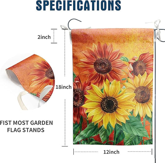 Fall Garden Flag Sunflower Yard Flag for Outside Late Summer Flags 12x18 Double Sided Welcome Autumn Thanksgiving Holiday Outdoor Decorations