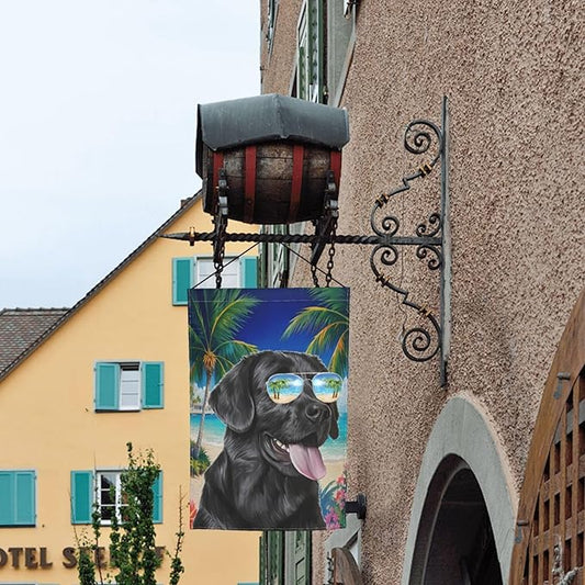 Labrador Dog Summer Beach Palm Trees Tropical Garden Flag Welcome Party Outdoor Outside Decorations Picks Home House Garden Yard Decor 12x18 Inch