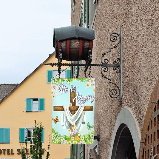 Christian Easter He Is Risen Cross Spring Garden Flag Welcome Party Outdoor Outside Decorations Picks Home House Garden Yard Decor 12x18 Inch