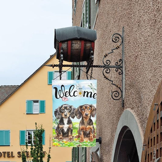 Cute Dachshund Dog Puppy Lovers Spring Flowers Florals Garden Flag Welcome Party Outdoor Outside Decorations Picks Home House Garden Yard Decor 12x18 Inch