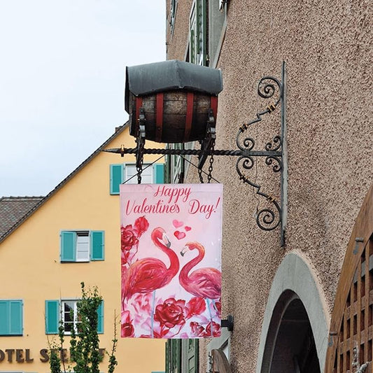 Happy Valentine'S Day Flamingo Rose Garden Flag Welcome Party Outdoor Outside Decorations Picks Home House Garden Yard Decor 12x18 Inch