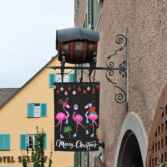 Merry Christmas Flamingo Hawaii Tropical Garden Flag Welcome Party Outdoor Outside Decorations Picks Home House Garden Yard Decor 12x18 Inch