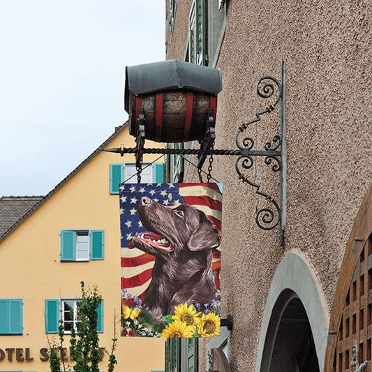 Chocolate Labrador American Flag Patriotic Dog Garden Flag Welcome Party Outdoor Outside Decorations Picks Home House Garden Yard Decor 12x18 Inch
