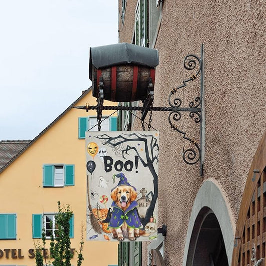 Golden Retriever Dog Halloween Boo Pumpkin Garden Flag Welcome Party Outdoor Outside Decorations Picks Home House Garden Yard Decor 12x18 Inch