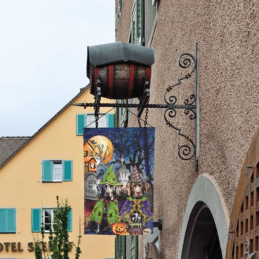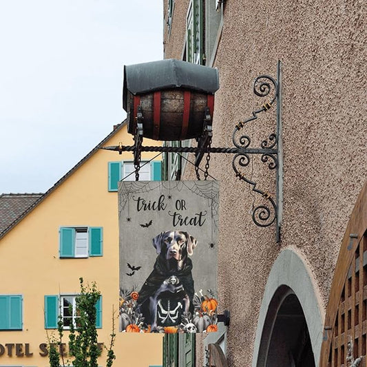 Labrador Dog Halloween Tombstone Scary Pumpkin Garden Flag Welcome Party Outdoor Outside Decorations Picks Home House Garden Yard Decor 12x18 Inch