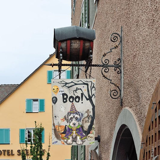 Halloween Schnauzer Dog Boo Pumpkin Skull Garden Flag Welcome Party Outdoor Outside Decorations Picks Home House Garden Yard Decor 12x18 Inch