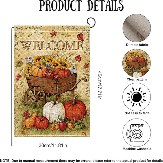 Fall Garden Flag 12 x 18 Inch Double Sided Welcome Pumpkin Sunflower Maple Leaves Farm Designs Autumn Burlap Yard Flag for Outside Rustic Yard Outdoor Holiday Home Decoration
