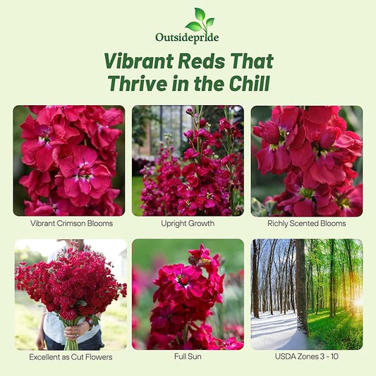 Outsidepride Ten Week Crimson Mattiola Stock Seeds - 1000 Pcs Annual Flower Seeds for Planting with Fragrant Blooms That Attract Pollinators, Compact Growth, for Cut Flower Arrangements & Containers