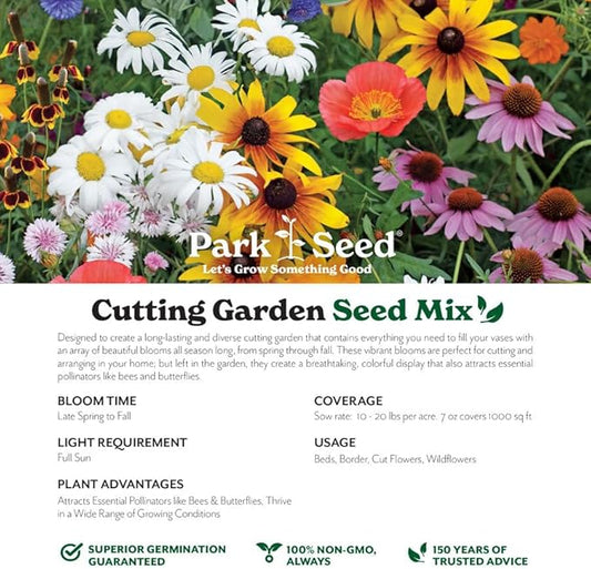 Park Seed Grow Your Own Vibrant Annual and Perennial Wildflower Garden Seeds Mixture, Easy to Grow Varieties for Pollinators and Spring Gardens - Cutting Garden Mix, 1/4 lb