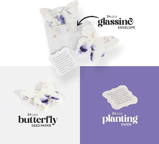 Set of 24 Purple Butterfly – Plantable Seed Paper Embedded with Wildflower Seeds for Bridal Shower, Wedding Gift, Birthday, & Other Milestone Celebrations