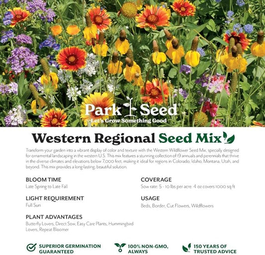 Park Seed Grow Your Own Vibrant Annual and Perennial Wildflower Garden Seeds Mixture, Easy to Grow Varieties for Pollinators and Spring Gardens - Western Regional Mix, 1 lb