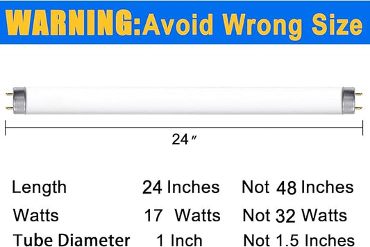 24 Inch F17T8/865 Fluorescent Bulb Daylight 6500K, 17 Watt T8 Light Bulb, 2 Foot Fluorescent Light Bulb, 1460 lumens, G13 Medium Bi-Pin Cap 8 Pack