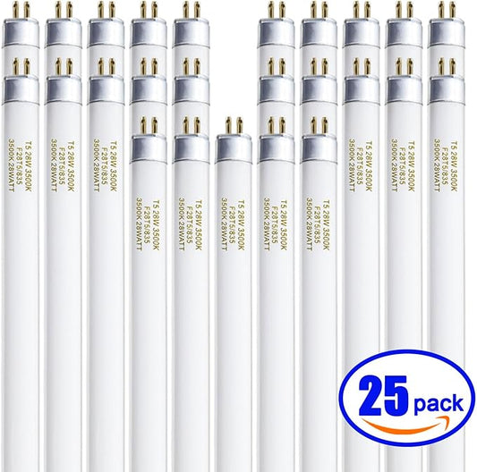 T5 28 Watts Fluorescent Light Bulb, 46 Inch T5 Fluoerscent Tube Compatible with Philips F28T5/835/ALTO, Sylvania FP28/835/ECO, 3500K Soft White Mini Bi-Pin Base G5, 2800 Lumens CRI 85 25 Pack