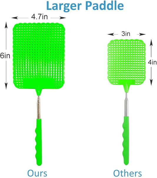 foxany Fly Swatters Extendable, Durable Plastic Fly Swatter Heavy Duty Set, Telescopic Flyswatter with Stainless Steel Handle for Indoor/Classroom/Office (3 Pack)