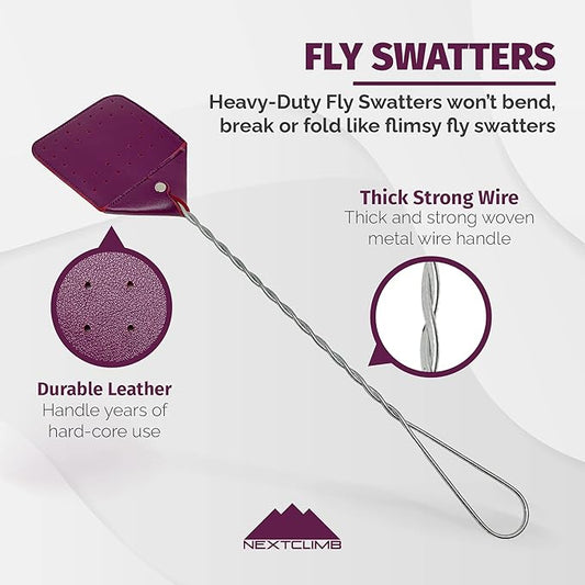 Fly Swatter Heavy Duty Vegan Leather, 21" Thicker Extra Long Sturdy Metal Woven Wire Handle, Manual Large Flies Killer Swatters Insect Smasher Bug Bee Wasp for Indoor and Outdoor (1 Pack, Purple)
