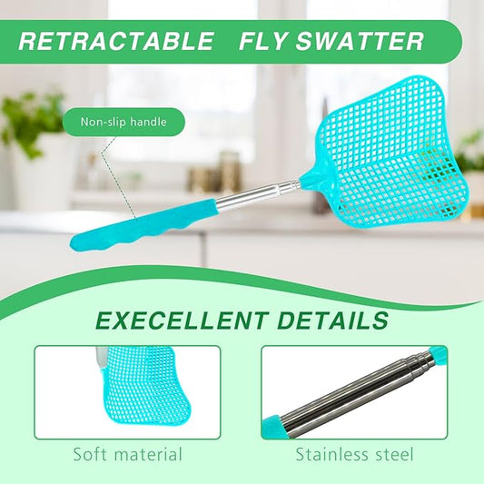 MYSTICHOME Fly Swatter 1 PCS, Durable Heavy Duty Plastic Fly Swatters, Stainless Steel Telescopic FlySwatter for Indoors/Outdoor/Kitchen/Garden (Blue)