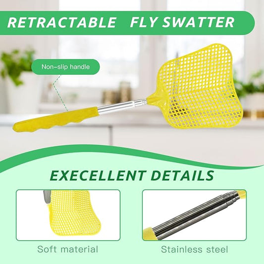 MYSTICHOME Fly Swatter 1 PCS, Durable Heavy Duty Plastic Fly Swatters, Stainless Steel Telescopic FlySwatter for Indoors/Outdoor/Kitchen/Garden (Yellow)