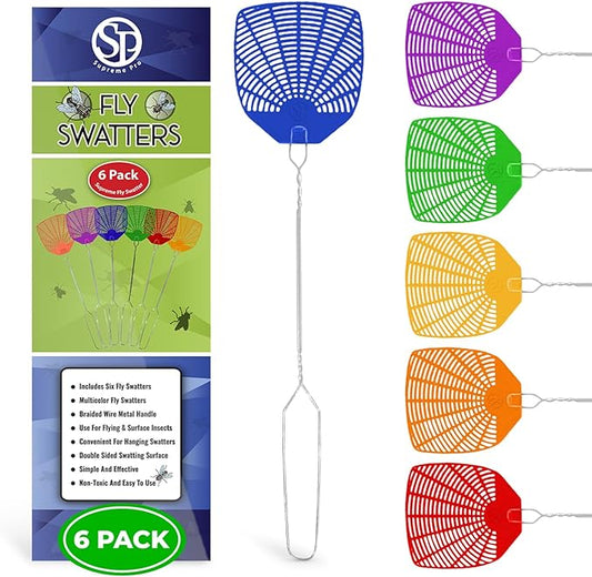 Supreme Bug & Fly Swatter 6-Pack – Braided Metal Handle 6 Pack Fly Swatters, Multi Pack Colors, – for Indoor/Outdoor – Flyswatter