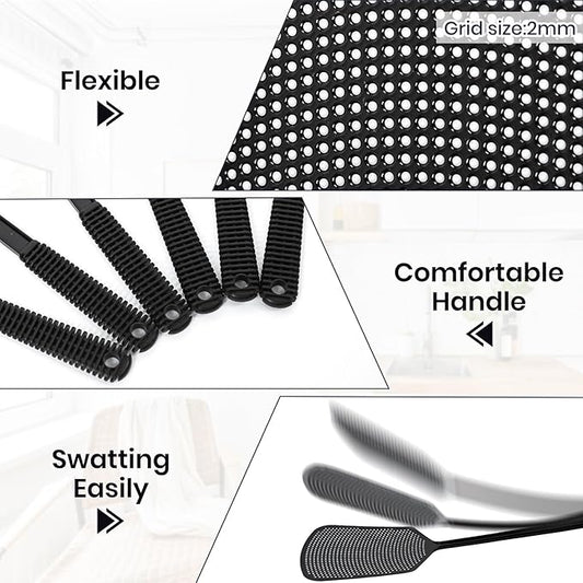 6-Pack Heavy Duty Long Handle Fly Swatter, Fly Swatter for Indoors, Black