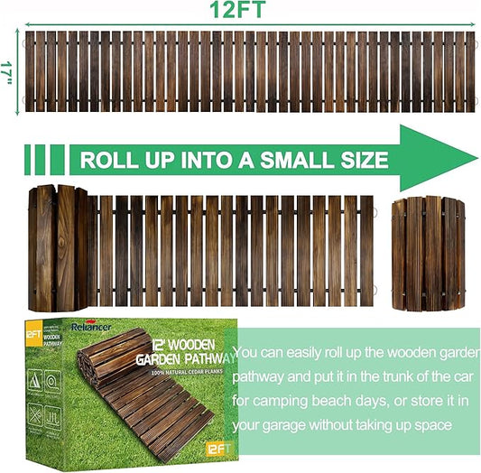 RELIANCER 12' Wooden Garden Pathway,Outdoor Roll Out Cedar Straight Walkway,Patio Path Decorative Garden Boardwalk Walkways,Weather-Resistant Roll Up Beach Wood Road Floor,Wedding Party Pathways