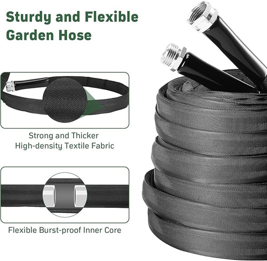 25FT Garden Hose, 304 Stainless Steel Water Hose, Flexible with a 10-Mode Nozzle Sprayer, No Kink, Lightweight, Puncture Proof, Ideal for Yard, Lawn, Outdoor, 5/8'' Outside Diameter