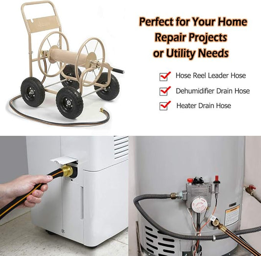 YAMATIC Female to Female Short Garden Hose 5/8 in x 10 ft, 2 in 1 Dual Use Heavy Duty Leader Hose with Solid Brass Connector, All-Weather Water Hose, Burst 600 PSI