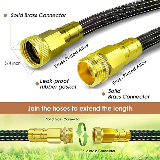 Solution4Patio Lead-in Green Garden Hose 5/8 in. x 25 ft. -Kink Free, No Leaking, Male/Female Fittings -Heavy Duty Durable Flexible Lightweight Water Pipe -Brass Aluminum Ends for Household & Yard