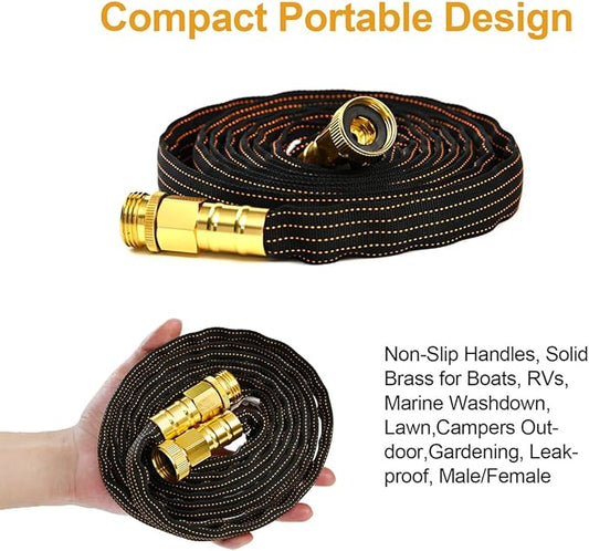 HydroTech 5/8" 25 ft Expandable Garden Hose - Flexible, Lightweight, Durable and Burst-Proof Hose with Reinforced Latex Core and Solid Brass Fittings - Great for Lawn Care, Garden, and Car Washing