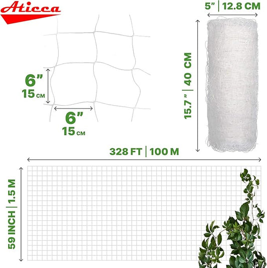 Plastic Trellis Netting 59" x 328 ft Heavy Duty Plant Support Netting White - 6 Inch Garden Trellis on Roll - Mesh for Growing Vine Climbing Plants, Flowers, Peas, and Cucumber