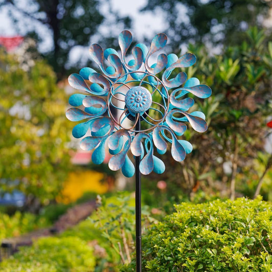 14'' Wind Spinners Outdoor, Flower Metal Garden Wind Spinners Outdoor, Kinetic Wind Sculptures & Spinners for Yard Garden Lawn Decor (Blue)
