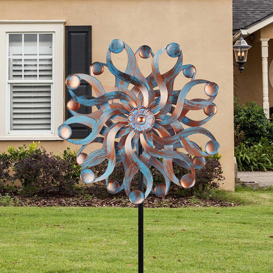 2 Pack Metal Wind Spinners for Garden Decor - Outdoor Windmill Sculptures, Durable Yard Art Wind Spinners Metal Wind Spinner for Patio Lawn Ornament, Vibrant Red & Blue Garden Spinners