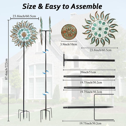 Metal Wind Spinner Outdoor, Wind Spinners for Yard and Garden, 84 inch Wind Sculptures & Spinners, Windmill for Yard Art
