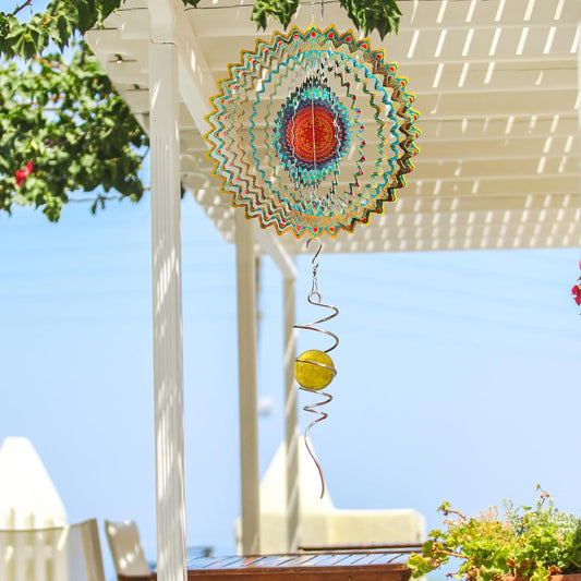 Mandala Daisy Wind Spinner - 12In 3D Kinetic Metal Wind Spinners, Stainless Steel Laser Cut Hanging Wind Sculpture, Indoor/Outdoor Garden & Yard Art Decor Gifts for Women, Men & Holidays